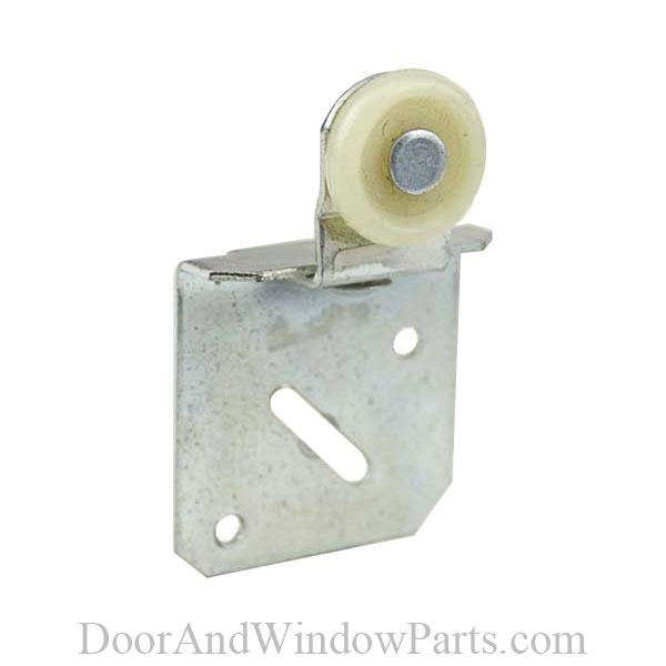 Description: Single wheel; top hung; side mounting; offset adjustable steel bracket; flat edge nylon wheel; fits 1/2 to 1-3/8 thick bi-passing doors; 50 lbs. capacity. Back.