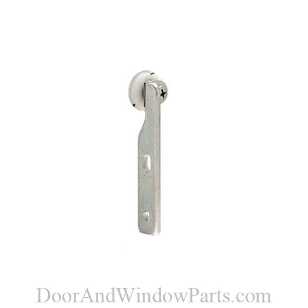 Description: Single wheel; top hung; side mounting; offset adjustable steel bracket; round edge nylon ball bearing wheel; fits 3/4 to 1-1/4 thick doors. 3/4 diameter.